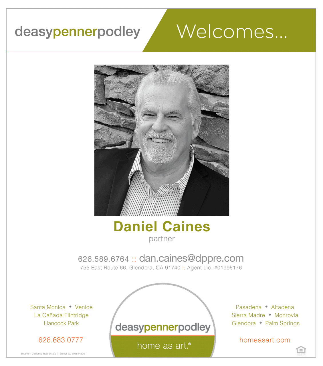 Born and raised in the San Gabriel Valley, Daniel Caines knows the neighborhoods from Pasadena to San Bernardino as well as any real estate agent can. He spent several years as a licensed real estate appraiser before becoming a licensed real estate agent and he’s also married to an extremely successful realtor® of 30 plus years. Providing excellent and friendly service, let Daniel put this unique knowledge and experience into the selling or the search for your new home.