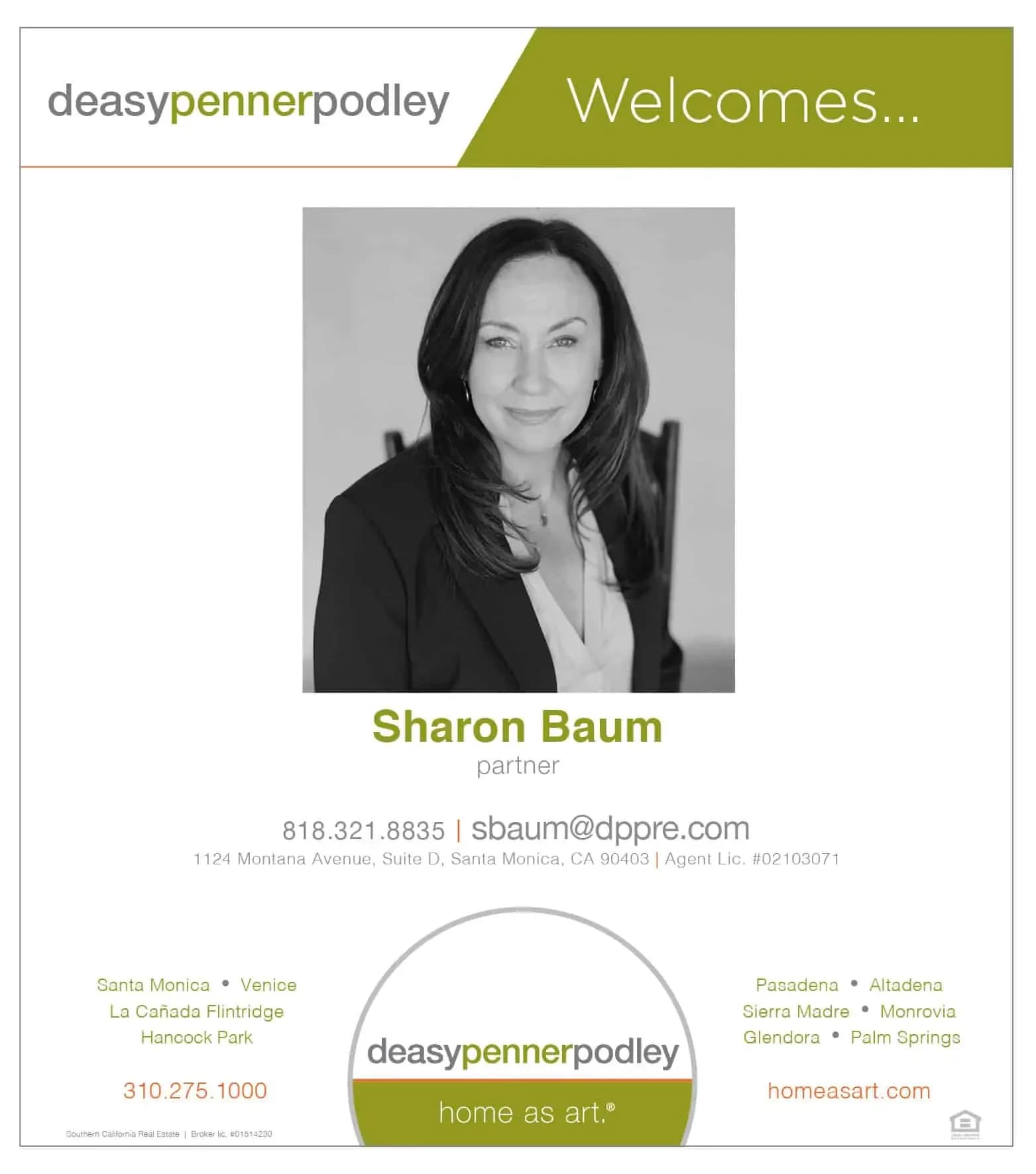 Deasypennerpodley Is Excited to Announce Sharon Baum as A New Agent to Our Westside Family.